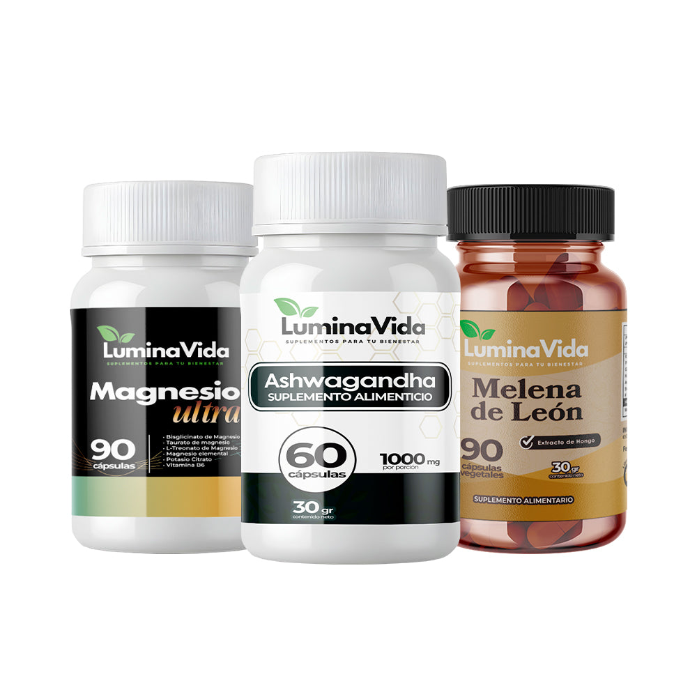 El Magnesio suele tener un efecto relajante inmediato (en los primeros días). Los adaptógenos (Ashwagandha y Melena de León) funcionan por acumulación; sentirás su máximo beneficio en la regulación del cortisol tras 2-3 semanas de uso constante.